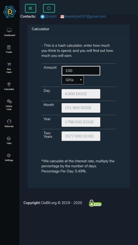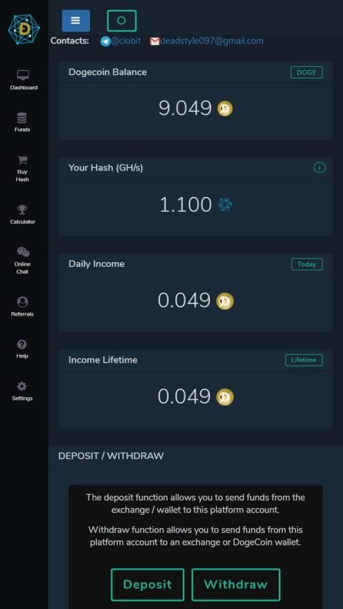 Platform CloBit memungkinkan Anda memperoleh penghasilan dari penambangan cloud cryptocurrency Bitcoin, tarif harian kami adalah 0,49% dari pendapatan, Anda juga dapat menjual daya komputer Anda, dan seseorang pasti akan membeli dari Anda.