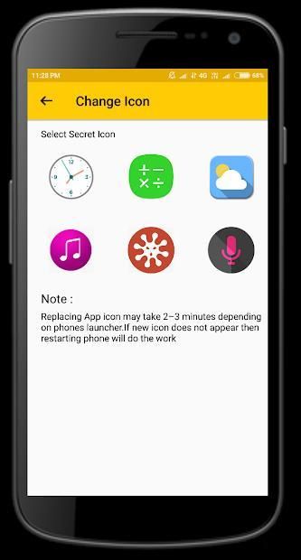 • Icon Hide/Replace: Replace your Clock Icon with other icons like Vault Calculator, Whether, Music, Calculator Lock, Calculator Vault etc