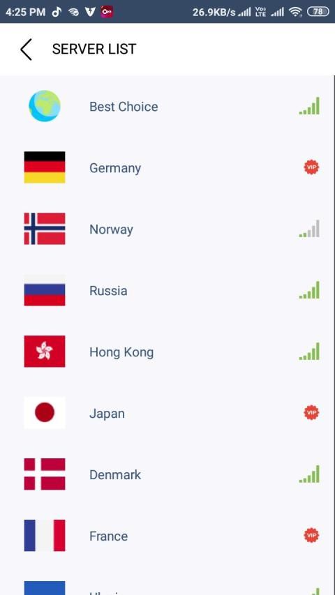 2. Buka aplikasi penyedia layanan vpn, pilih negara yang ingin Anda sambungkan ke server proxy vpn