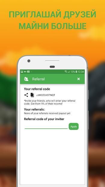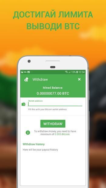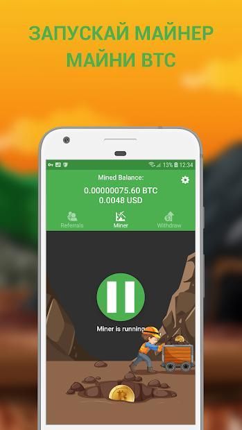 Пожалуйста, приймите во внимание что биткоин майнинг не осуществляется на Вашем устройстве. Ваш телефон никогда не нагреется, и у него не будет проблем с батареей от данного удаленного биткоин майнера. Это приложение всего лишь клиент для серверного биткоин майнинга.