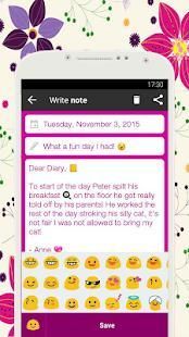 Diary adalah sebuah aplikasi sederhana yang memungkinkan Anda menulis setiap hari pikiran / ide / kenangan dengan antarmuka pengguna yang sederhana. Tambahkan sentuhan visual untuk kenangan Anda melampirkan foto.