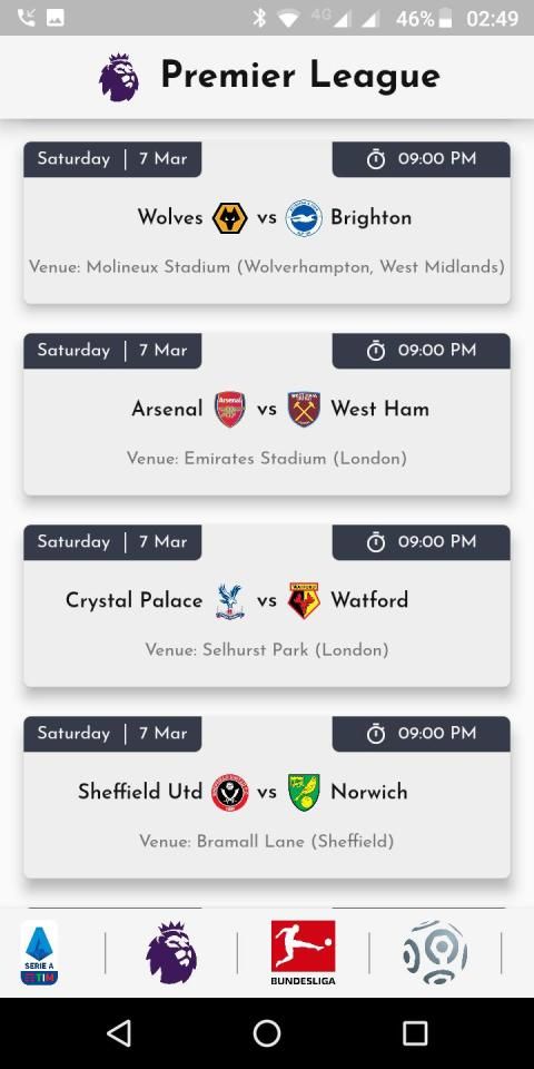 You will always be updated with real-time fixtures of these 7 World Class Leagues. Soon, we will add more Leagues and features.