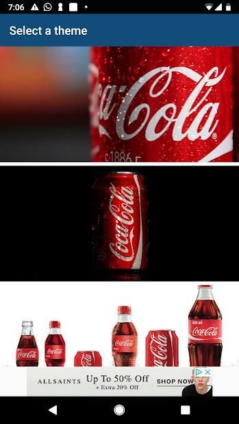 Usap tema berbeda dari minuman Coca-cola yang ikonik dan hilangkan dahaga untuk mempersonalisasi ponsel Anda sesuai keinginan Anda. Ada banyak wallpaper dan gaya untuk dipilih yang akan meningkatkan tampilan, secara visual, tanpa mengorbankan produktivitas.