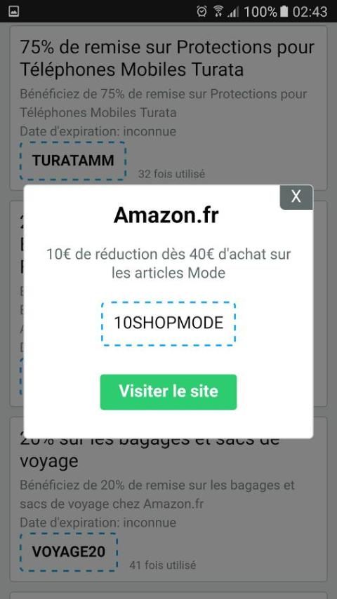 Mencari kode kupon Amazon, berkat aplikasi ini, menemukan kode (kupon) diuji dan diverifikasi untuk operasi yang tepat dari situs Amazon.fr