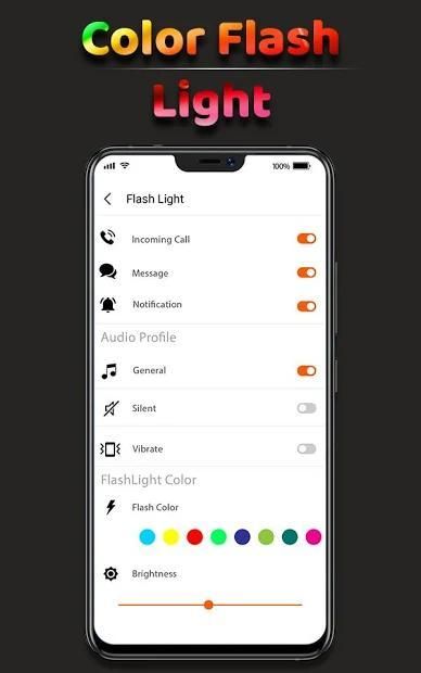 - color flashlight Notification Color app can be set to work in different phone modes.