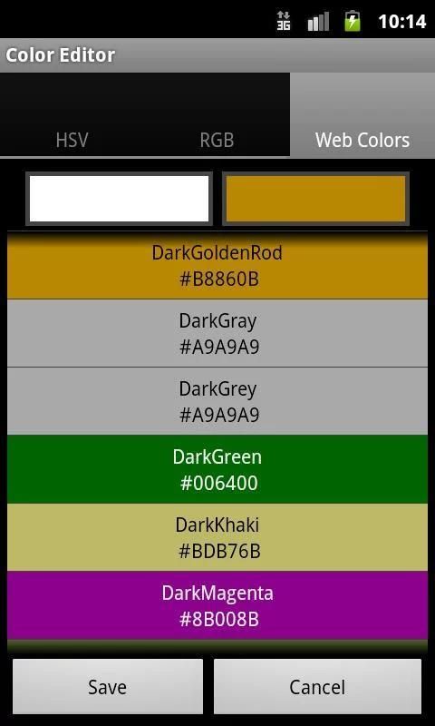 - Pilih warna dari daftar warna web resmi dari standar w3.