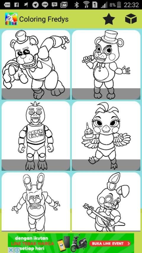 Aplikasi ini mewarnai untuk anak-anak. pada aplocation ini anak-anak Anda warna pilihan bebas untuk cat untuk lima malam karakter permainan. yang akan memungkinkan Anda anak-anak untuk mendapatkan bahkan lebih senang mewarnai FNAF Karakter