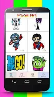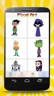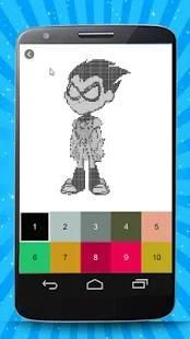 This titans Pixel art game is addictive for learning drawing coloring teen titans colour by number.