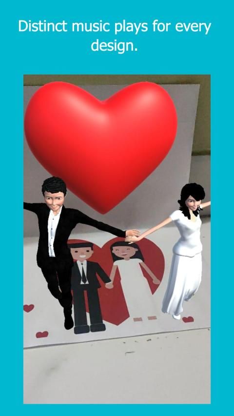 2. Adegan AR Wedding Anniversary Card diaktifkan - Kartu Anniversary Pernikahan untuk pemberian hadiah kepada pasangan Anda atau pasangan bahagia yang merayakan hari istimewa mereka. Animasi ini termasuk tarian yang sangat imut dan musiknya pasti membuat mereka mengetuk kaki mereka.
