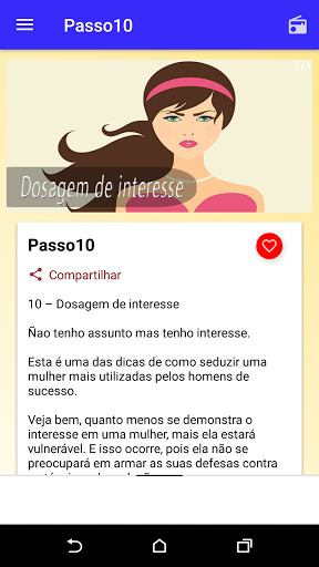 Unduh aplikasi ini secara gratis dan kenali 10 langkah sederhana dalam seni rayuan, yang digunakan dengan benar, akan membawa manfaat luar biasa bagi mereka yang mencari dan ingin benar-benar menaklukkan seorang wanita.