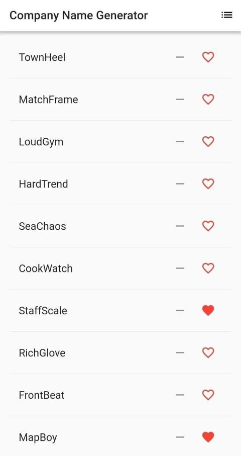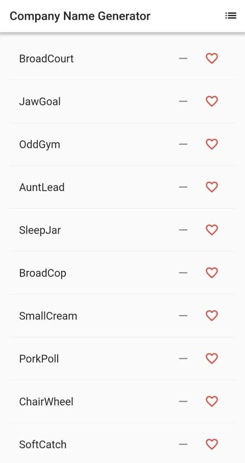 Generate unlimited random company names to help you choose or find inspiration for your next company idea. With no login required, you can save the names you like so you don't forget them!