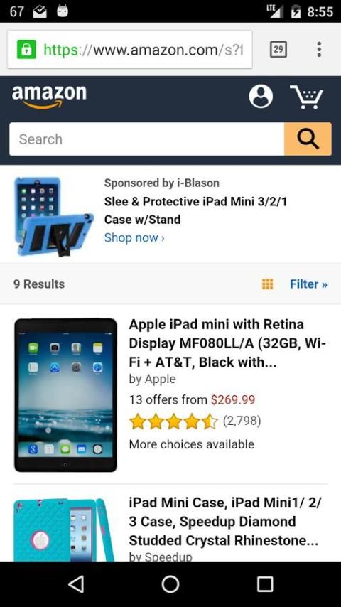 Dengan Bandingkan dengan Amazon Anda dapat dengan mudah membandingkan produk Anda temukan secara online dengan apa Amazon telah di toko. Hanya pergi ke setiap produk di situs belanja atau aplikasi (seperti Sears, Target, dll) dan menggunakan tombol Share aplikasi atau menu. Pilih Bandingkan dengan Amazon dan Anda akan langsung mendapatkan halaman Amazon untuk produk yang Anda cari di.