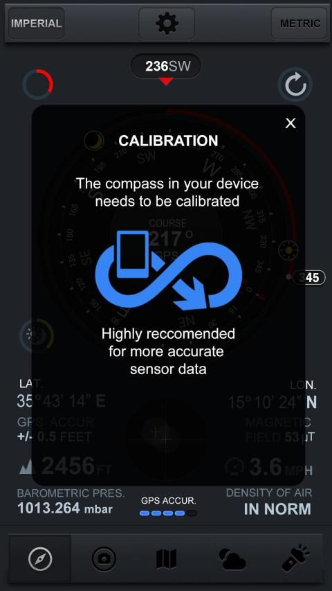 Compass G241 is easy to use app for professionals as well as amateurs! It is a real compass! It shows device real-time orientation to magnetic fields. It displays a lot of useful information like location, altitude, speed, magnetic field, barometric pressure, weather, sun and moon azimuth etc. It has 3 themes, and you can use just which you like.