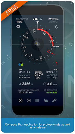 Kompas Pro adalah aplikasi untuk para profesional dan juga amatir! Kompas Pro adalah kompas nyata! Ini menunjukkan perangkat berorientasi real-time ke medan magnet. Ini menampilkan banyak informasi berguna seperti lokasi, ketinggian, kecepatan, medan magnet, tekanan barometrik, dll.