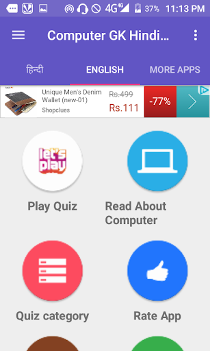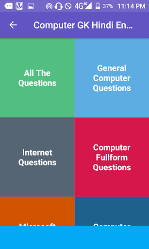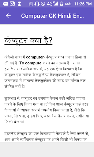 Computer GK Hindi English App developer for improve your computer general knowledge and also this app is use for competitive exam computer questions.We add 1000 questions in this app.This app provide Computer Questions in MCQ Type.You can also read computer related knowledge in Hindi and English both language.