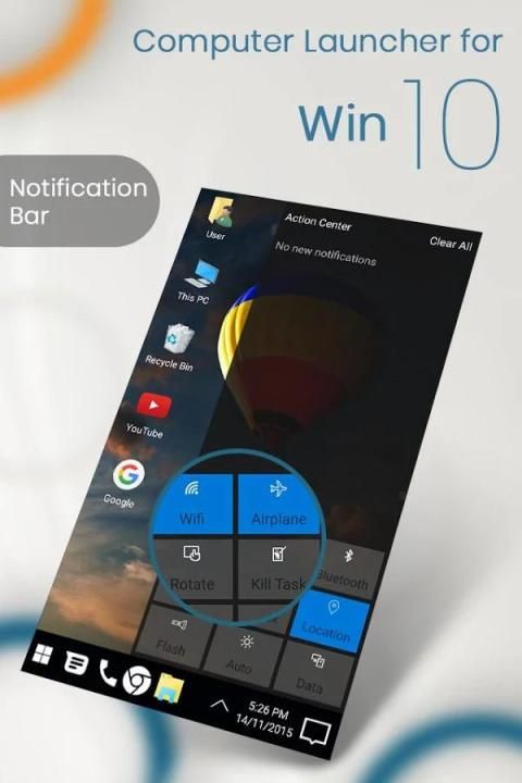 Komputer Launcher akan membuat layar telepon rumah Android Anda terlihat seperti Desktop gaya peluncur jendela 10Custom Desktop Desain komputer.