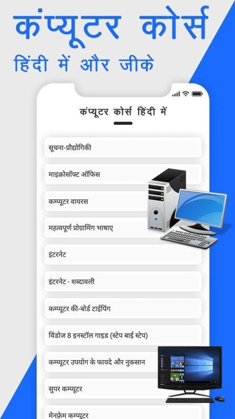Kursus Belajar Komputer dalam bahasa Hindi adalah aplikasi gratis untuk mempelajari keterampilan komputer dasar.