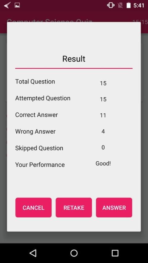 Aplikasi ini (Ilmu Komputer Kuis) mengandung 100 + pertanyaan paling populer pilihan ganda. Siswa dapat memecahkan pertanyaan dalam interval waktu. Jadi, mereka dapat menemukan akurasi dan kecepatan keterampilan pemecahan mereka.