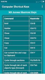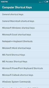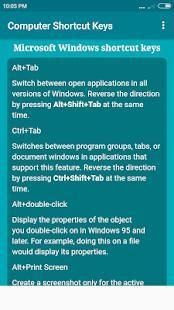 This app contains following computer shortcut keys