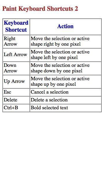 Windows 7 Paint Keyboard Shortcuts