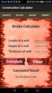 Construction Calculator , is can used to calculate Bricks.Cement,concrete for desired buildings that is estimated result which will very near to you actual needs.