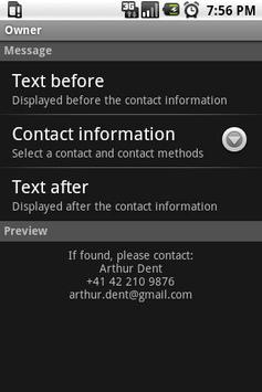 Display your contact information when the device is locked, allowing the finder to contact you. Select yourself (or a friend) from your list of contacts, then select which information you want shown.
