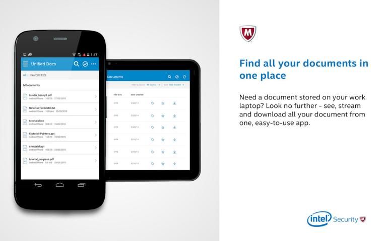 Konten Anda tinggal di mana-mana, tetapi Anda tidak harus melihat di mana-mana untuk menemukannya. McAfee Personal Content Manager adalah layanan file aggregator. Agregat file di perangkat Anda dan layanan Cloud, sehingga Anda dapat melihat dan mengakses foto, video, dan dokumen di satu tempat, dari satu mudah-ke-menggunakan aplikasi - benar-benar gratis!