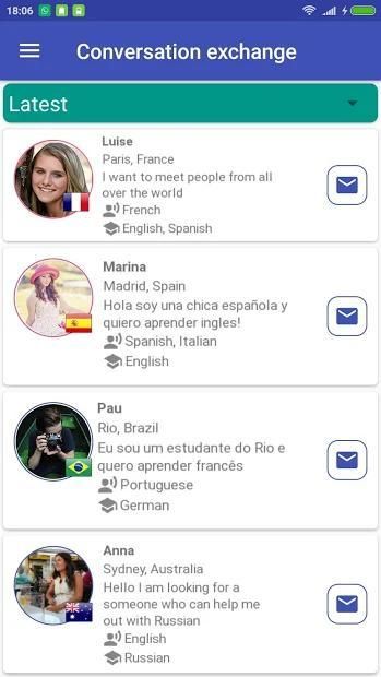 With this application you will easily find people people all over the world to chat with! You will be able to do conversation and language exchanges with whoever you want and practice languages with native speakers.