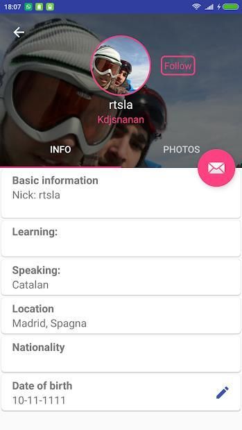 Setiap pengguna memiliki profil dengan informasi (nick, usia, jenis kelamin, belajar dan bahasa berbicara, kota) sehingga Anda bisa mendapatkan berhubungan dengan orang-orang yang menarik perhatian Anda.