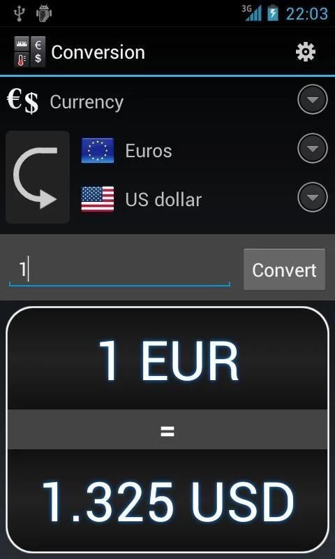 Konversi mata uang menggunakan kurs download dari Bank Sentral Eropa, dan memungkinkan konversi antara 34 mata uang yang berbeda! Nilai tukar diperbarui oleh ECB setiap hari kerja pukul 3 sore waktu Eropa Tengah (CET). Aplikasi mendeteksi ketika nilai tukar download ke perangkat Anda berada di luar tanggal dan meminta Anda jika Anda ingin men-download tukar terbaru.