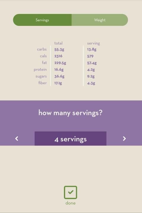 • "aplikasi yang sangat berguna bagi saya karena saya menghitung karbohidrat dalam gram sehingga saya akhirnya memiliki cara mudah untuk total sampai semua makanan akurat daripada perkiraan berdasarkan pada foto"