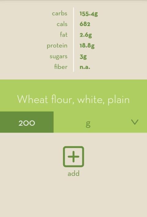 • Membuat resep Anda dengan memilih bahan-bahan Anda dan memasukkan jumlah. Cook & Hitungan akan menemukan semua info gizi, tambahkan semuanya dan memberikan info nutrisi untuk setiap porsi.