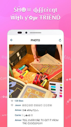 Font Unik yang dapat digunakan di mana-mana Anda dapat mengetik pesan (email, SMS, Aplikasi Jejaring Sosial ...) Cool Fonts App tidak menginstal font di Android Anda Telepon. Anda dapat mengetikkan pesan dalam font keren dengan font dan salinan yang dipilih. Anda dapat menempelkan teks yang disalin di aplikasi lain. Gunakan font ini di Instagram. Cukup ketik pesan di App & Salin. Maka Anda dapat membuka aplikasi Instagram dan menempelkannya di mana pun Anda inginkan. Bagikan ide-ide hebat Anda, saran kepada teman Anda dengan pesan teks lucu. Anda dapat menempelkannya ke bio. Maka bio Anda terlihat berbeda. Emojicon juga berbeda.
