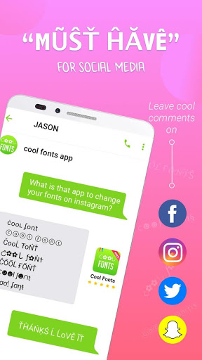 Ubah gaya font Anda pada obrolan Anda. Cinta, manis dan penuh warna seperti yang Anda inginkan. Jadilah yang pertama untuk mendapatkannya dan mengejutkan teman-teman Anda dengan salah satu font luar biasa ini;) Ini akan menjadi pilihan Anda yang benar. Selain itu, Anda akan dapat menikmati font Anda untuk SMS dan Pesan, namun jenis huruf yang digunakan pada perangkat Anda akan dikirim ke orang-orang yang Anda kirimi pesan teks. Ratusan gaya font yang dipilih dari font tulisan tangan seperti: imut, lebih gelap, komik, galaksi, cinta, merah muda, tulis seksi, font warna, font bersih, dll. Berbagai jenis gaya font untuk ponsel semua tersedia untuk Anda. Anda dapat menemukan gaya font yang sempurna yang sesuai dengan selera Anda. Ubah font Pesan Anda. Datang dan alami font khusus untuk Anda!