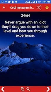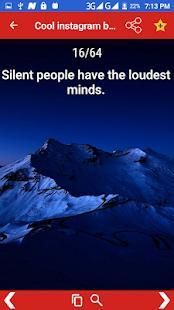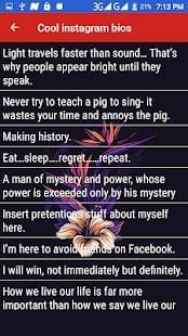 As Instagram grows older each year and more profiles are added, it becomes harder to find a cool bio for Instagram. However, With this App you got cool Instagram bios that are guaranteed to raise some interest around your account. We have options that will make people laugh, nod in agreement and just generally, spike their interest in order to find out more about you.