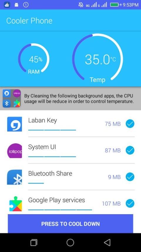 Cooler aplikasi CPU mencegah CPU lebih pemanasan selama multitasking dan mendinginkan telepon Anda.