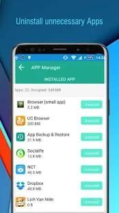 The application helps clean up the garbage for the android phone, disappeared the unused user files but still running underground do not detect such as system buffers, redundant files, clean junk files. .