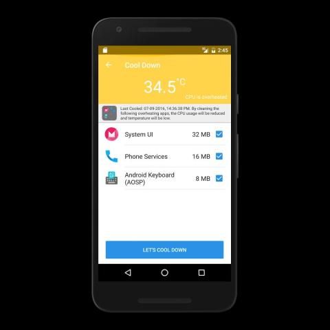 Menganalisa penggunaan CPU secara dinamis, dan mendeteksi aplikasi yang lebih menggunakan CPU untuk menentukan penyebab ponsel lebih dari pemanasan.