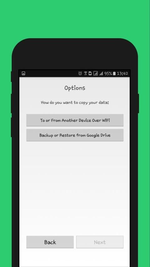 Menyalin data dari satu ponsel ke yang lain melalui jaringan WiFi, tanpa perlu komputer.