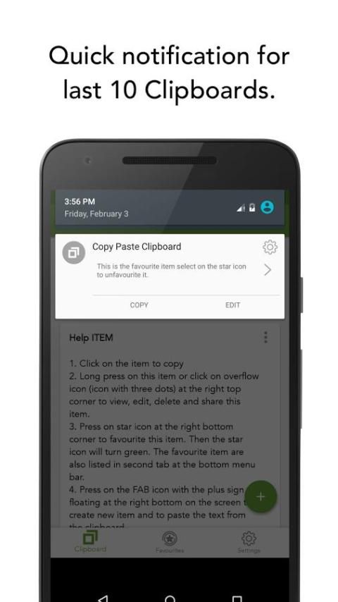 A. If you wish to manage the clipboard item, click on the star icon to favorite, and it should be moved to Favorite tab, second menu at the bottom. If you want to edit or delete it, long press on the text or press on the overflow menu with three dots to view actions to perform.