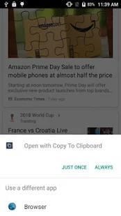 Sebuah aplikasi yang sangat kecil memungkinkan Anda untuk menyalin link ke clipboard sebelum pembukaan di browser dan berbagi teks konten ke clipboard.
