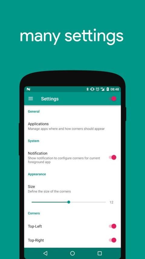 Sebagian besar kasus hardware perangkat dirancang dengan sudut membulat namun menampilkan sendiri telah kuadrat sudut. Aplikasi ini akan melengkapi sudut layar Anda untuk bergabung dengan sudut kasus Anda.