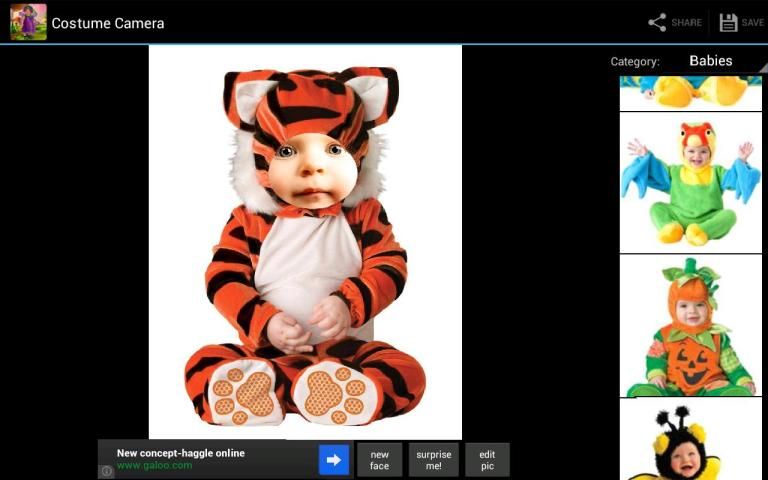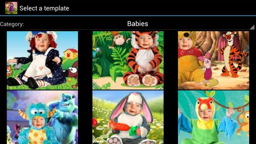 Pasang bayi atau anak menjadi kostum paling manis dengan mengklik tombol. Lebih dari 80 kostum untuk semua selera dan musim, dengan latar belakang putih atau yang imajinatif dan mewah. Berbagi foto dengan keluarga dan teman-teman dan membuat mereka tertawa dan bersenang-senang dengan Anda!