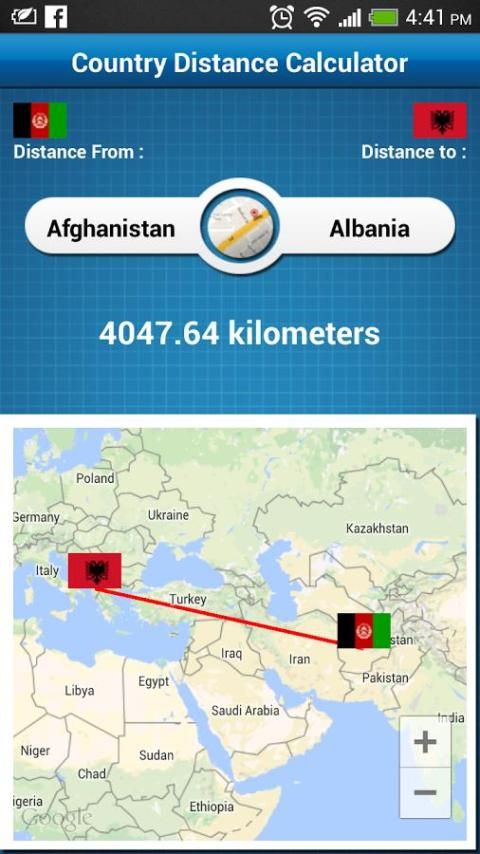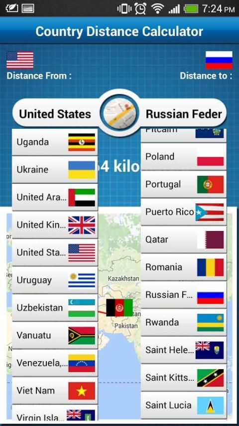 Negara Jarak Kalkulator dirancang khusus untuk menghitung jarak antar negara. Pilih negara dari dan ke negara dan BOOM! ini akan memberitahu Anda jarak antara dua negara dan juga aplikasi akan menampilkan negara-negara di peta mengarahkan oleh garis dengan bendera di atasnya. Sementara memilih negara dari dan baik memilih nama negara atau bendera, YES bendera untuk semua negara ditambahkan. Cari jarak antara 250 negara.