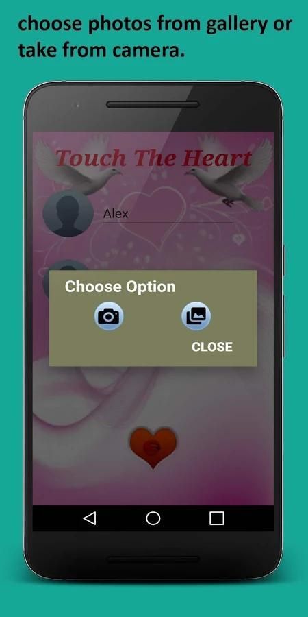 - mengatur gambar Anda dan gambar kekasih Anda dan menyentuh pada ikon jantung