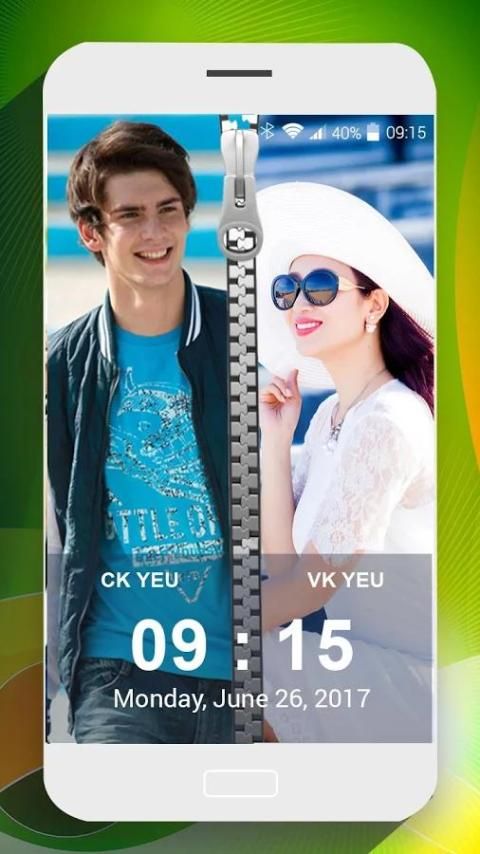 Pilih foto Anda dan kekasih Anda dan meletakkannya ke samping kunci layar zipper berdampingan.