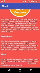 Coupons for Amazon is an independent application which is not related to any other apps or companies. All rights remain their respective owners. This app only gathers all available Coupons for Amazon for more convenience of users only.