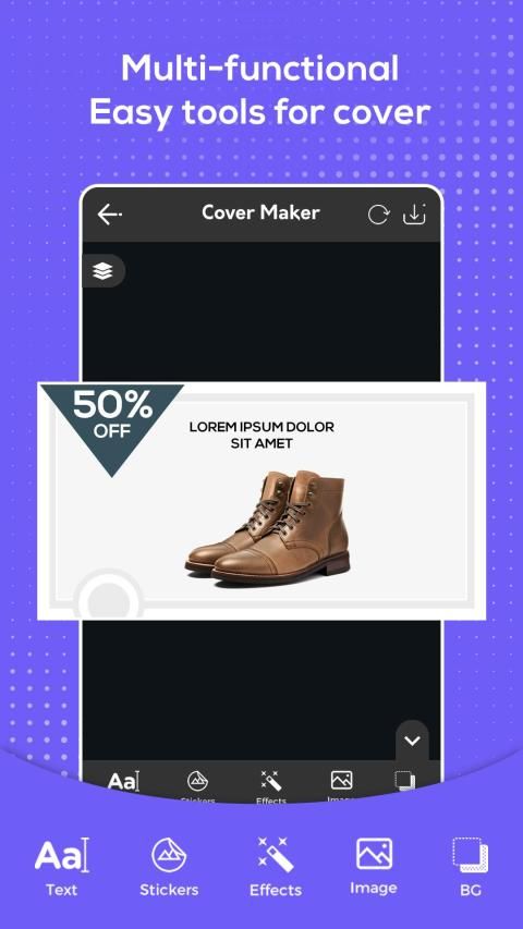 • Add text, sticker, effects, and photo filters to make your best Cover page for business.