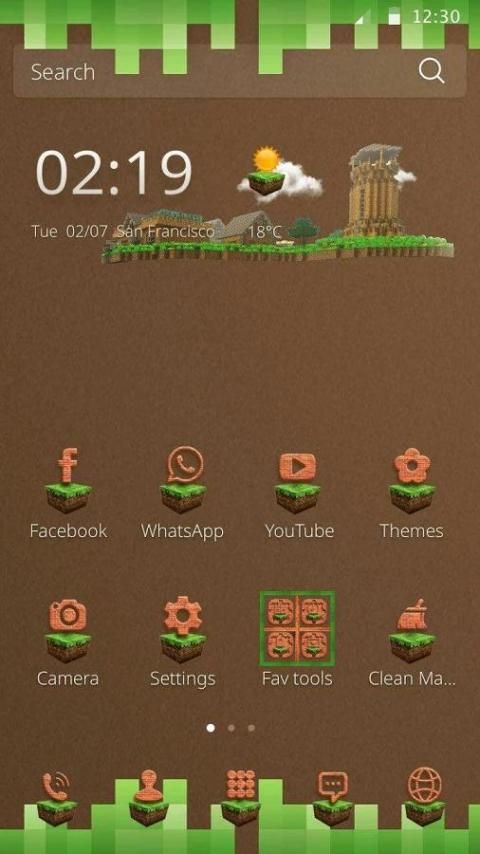 kerajinan tema dunia ini dirancang untuk penggemar sandbox permainan minecraft. Selamat datang di dunia saya dan tema minecraft untuk ponsel android Anda dengan alam