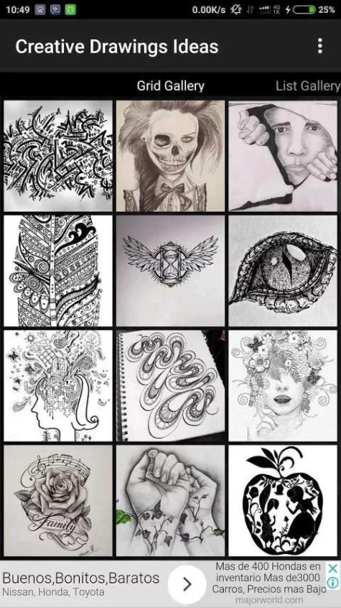 Melihat apa seniman lain telah dilakukan terikat untuk memberi Anda beberapa ide. Di sini Anda perlu mengunjungi galeri setempat atau museum seni. Anda juga bisa pergi ke perpustakaan dan membaca dengan teliti berbagai buku-buku seni. Dengan perkembangan teknologi, Anda juga dapat menemukan banyak sumber daya online. Dalam aplikasi ini kita dapat memberikan banyak desain tentang ide-ide seni menggambar. Jadi download sekarang dan cat kanvas Anda.
